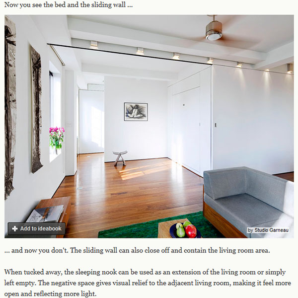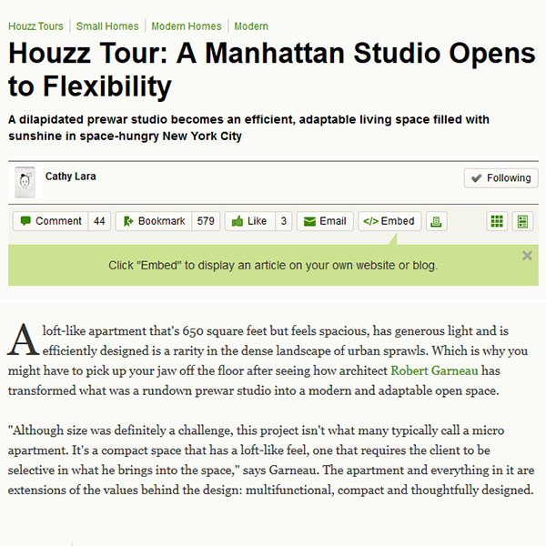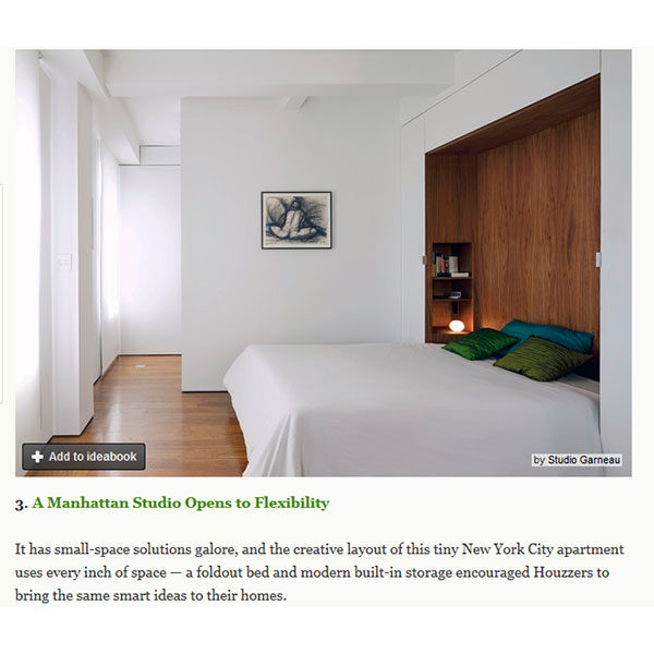 It has small-space solutions galore, and the creative layout of this tiny New York City apartment uses every inch of space — a foldout bed and modern built-in storage encouraged Houzzers to bring the same smart ideas to their homes.