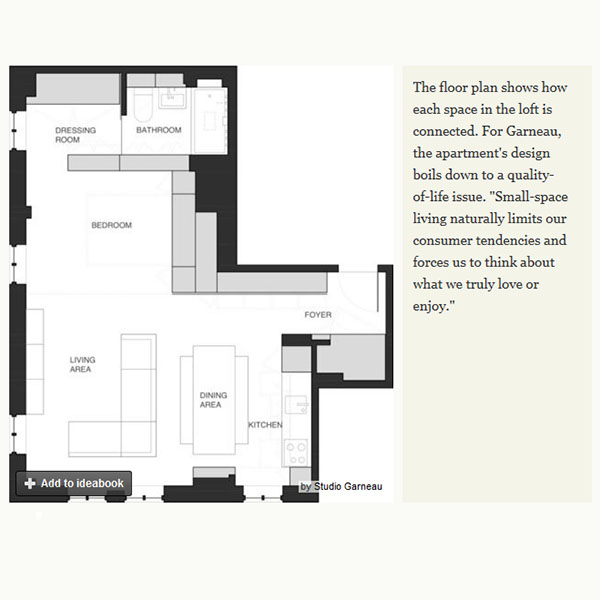 A loft-like apartment that's 650 square feet but feels spacious, has generous light and is efficiently designed is a rarity in the dense landscape of urban sprawls. Which is why you might have to pick up your jaw off the floor after seeing how architect Robert Garneau has transformed what was a rundown prewar studio into a modern and adaptable open space.