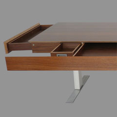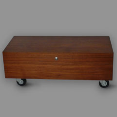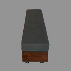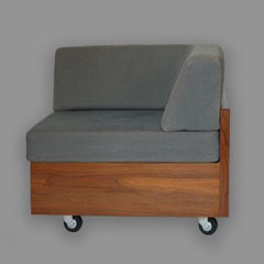 A simple kit of parts that consists of a console, two different sofa pieces - corner and middle, a bench, all of them on caster wheels so they can easily be moved around, and there is also a heigh adjustable table. All of these conceal withing them generous storage space.