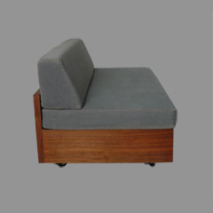 The wood is FSC certified sustainably harvested furniture grade plywood with a hand rubbed all natural tung oil finish. The cushions are natural rubber latex covered with wool muslin and hemp fabric.